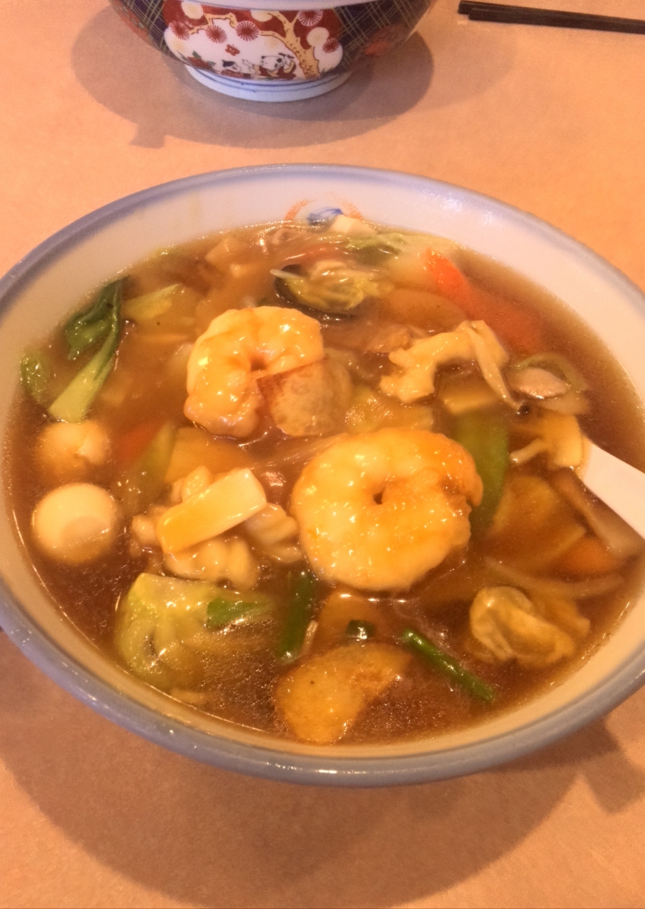 一軒食事を済ませた後でしたが、足りなかったので、フラフラしていてたまたま見付けたお店です♪(^o^)/何となく美味しそうな香りが漂っていたのに釣られて入ってみました♪(^o^)/昔ながらの中華やさんって感じですが、この土地で40年やってるとのこと♪これは期待できるかも♪一番有名な五目うまにそばと餃子を頼みました♪(^o^ゞ五目そばは具が15種類も入っていて、一日に摂る野菜の3分の2を摂れるみたいです♪o(^o^)o細縮れ麺で、スープアッサリで美味しかったです♪(*´ω`*)餃子はいわゆる餃子でしたね~f(^^;あと友達が頼んだチャーハンがめちゃくちゃ美味しかった~♪(*´ω`*)ここは当たりなお店を見付けた感じです♪o(^o^)o次回十条に来た時も来たいなと思います♪o(^o^)o