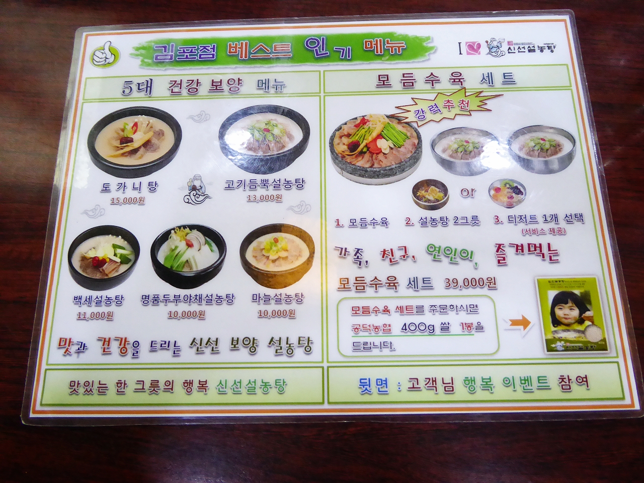 ここは韓国に初めて来たときから、どうしても来たかったお店でした♪(^_^)/しかしながら、金浦空港からは車で10分位なんですが、明洞辺りからだと電車乗り換えて、近くの駅からタクシーに乗ってと、かなりの時間が掛かる事から、ずっと諦めていました!( ノД`)…しかし、今回は空港にお迎えが来た時にオプションを付けて1時間好きな所に行ける事になり、それなら是非ともと思い、行く事が出来ました♪(^_^)/ここは韓国ドラマ華麗なる遺産のロケ地で、このお店で1/3位は撮影されていた位メインのロケ地なので、ドラマ好きには絶対に行ってほしいお店です♪(^-^ゞソルロンタンとキムチは他のお店と同じでした♪(^_^)/ただここのお店はテーブルに鷹の爪が細かくした唐辛子が瓶に入って置いてありました(^_^)/誰も使ってる人を見なかったけど、誰か使う人いるのかな?(・_・?)とにかくここはドラマ好きならば1度は訪れた方が良いお店ですよ♪(^-^ゞ
