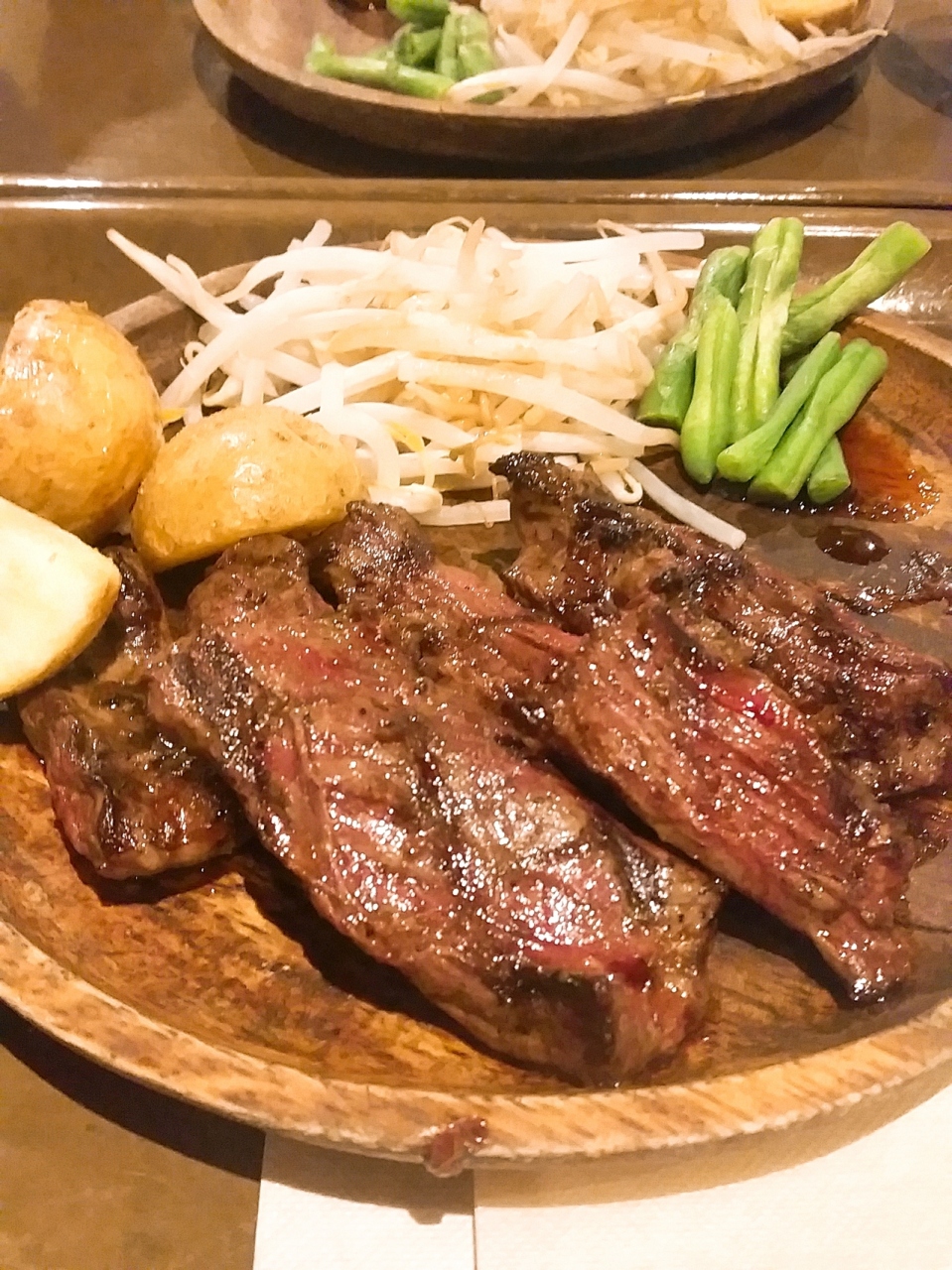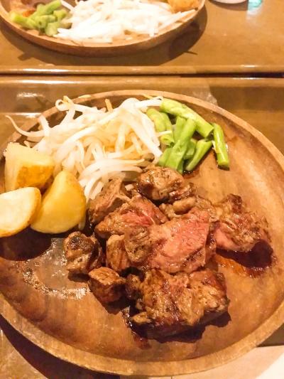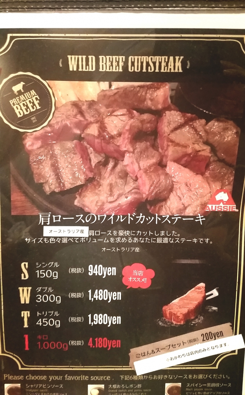 ここは京王線の南大沢駅から直ぐにある『フレンテ南大沢』の5階に入っているお肉のテーマパークです♪(^_^)/その中にあるお店の中で一番肉々しいお肉料理(ステーキ)が食べられるお店です♪(^_^)/ここでは店内かテーマパーク内のテーブルにて食べるかを選べます♪(^-^ゞステーキソースは6種類から選べて、シャリアピンソースが酸味が効いていて美味しかったです♪(*^^*)ただ残念だったのが、とにかくお肉をガッツリ焼き過ぎていて、噛みきるが大変だった(/´△`\)ステーキなら血が滴る位のがおいしいのになぁ~(^^;)(;^^)