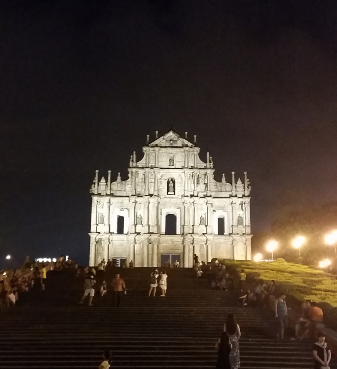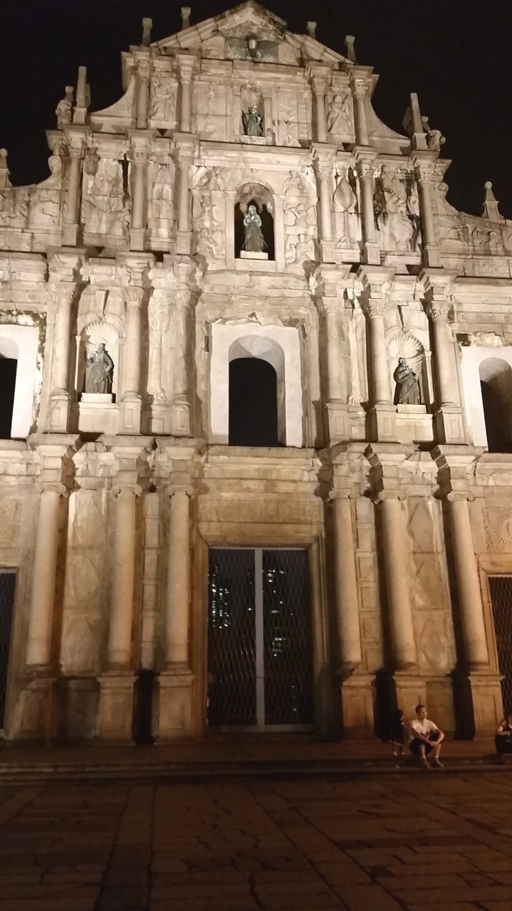 マカオのシンボルで、以前は聖アントニオ教会の礼拝堂でしたが、1582年にイエズス会により今の場所に移築されたそうです♪(^-^ゞその後1835に火事が起きてしまい、今の壁と階段だけが焼け残ったんです♪朝から夜まで沢山の人で賑わうマカオでは必見の観光スポットです♪(^-^ゞ