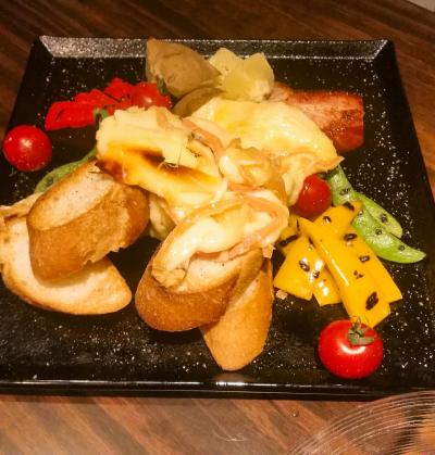 や野菜が運ばれてきて、その後に溶かしてあるラクレット