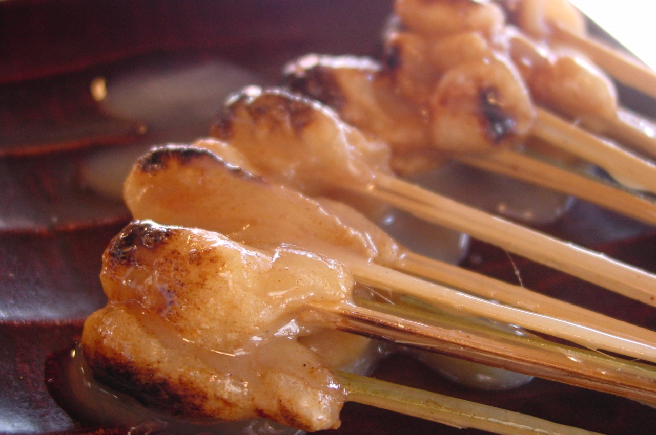 今宮神社にお参りをしたら、あわせて悪疫封じのおまじない餅を食べておかなくてはいけません(*^。^*)b 東門前に出ると左右にそれぞれあぶり餅やさんがありますので、どちらでもお好きなほうで召し上がってください♪どちらも一皿15本で500円です。白味噌のたれと少しこげたお餅の香ばしさがたまりません(涎)今回私が食べたのは、長保2年創業の「一和」。千利休師が茶菓がわりに用いたといわれ、現在も千家の御用達なんですって♪