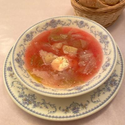 神保町にあるロシア料理のお店でランチにて利用いたしました。ボルシチとピロシキのセットをいただきました。ボルシチはパンもついてくるので浸しながら最後までいただけました。ピロシキもブリヌイの生地の中にひき肉がはいっており、揚げられたものでした。もっちりとした生地で中身も多かったので良かったです。お店の雰囲気も良くて、おいしくいただけました。