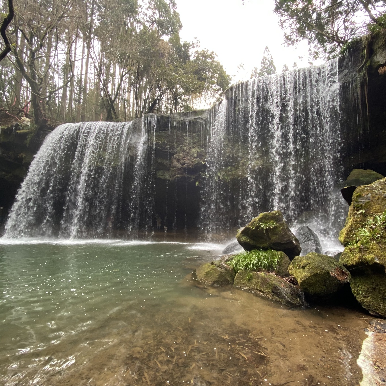 黒川温泉からバスとタクシーで向かいました。滝を裏側からも楽しめるので、素敵な景色を楽しむことができます。高さはそこまでなかったですが身近でみふことごでき、滝までの階段も整備されておりました。途中にはハートが隠されておりました。