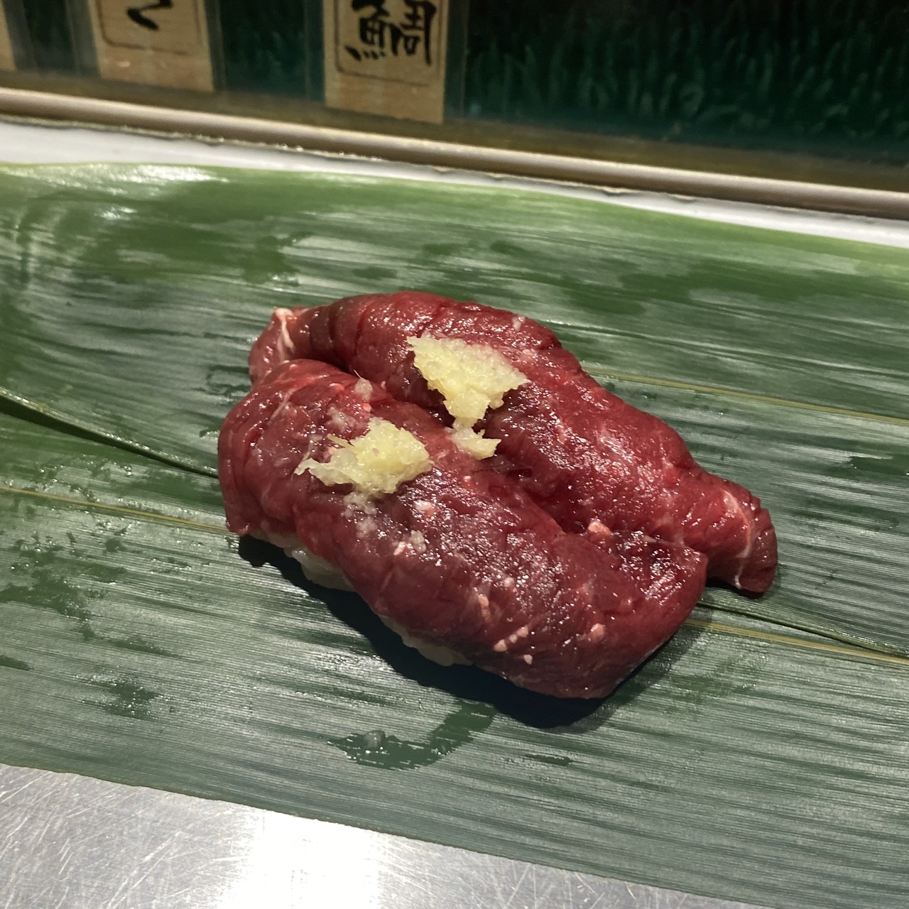 立ち食いですが、駅前立地でお寿司が楽しめる場所となっております。基本は2貫ずつとなっておりますが、おすすめがセットになったメニューもありました。クジラが入荷できたとのことでしたので、いただきましたら、柔らかくとろけておいしくいただけました。チェーン展開しているお店で一人でも入りやすい雰囲気でお店の人も親切でした。