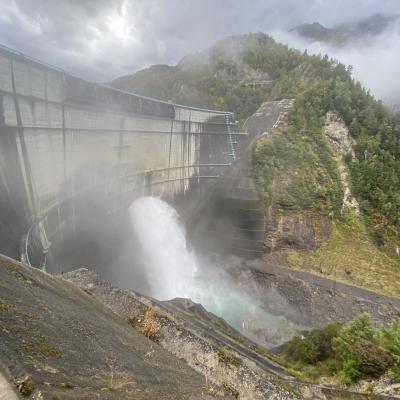 黒部ダムはいろいろな場所から楽しめるようになっており、こちらからも景色を楽しみました。こちらには特設広場もあり、黒部ダムの歴史がわかるようになっておりました。黒部の太陽という映画のトンネルセットのレプリカもありました。