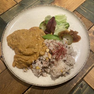神田カレーグランプリに参加している店舗で、ランチにて利用しました。今回は無水ココナッツシーフードクリーミーカレーをいただきました。シュリンプはおもっていたより大ぶりで食べ応えが合ってよかったです。店内はこじんまりとしておりますが、カレーの種類も多くて、夜はバーとのことで雰囲気も良かったです。お店の方は一人のようでした。