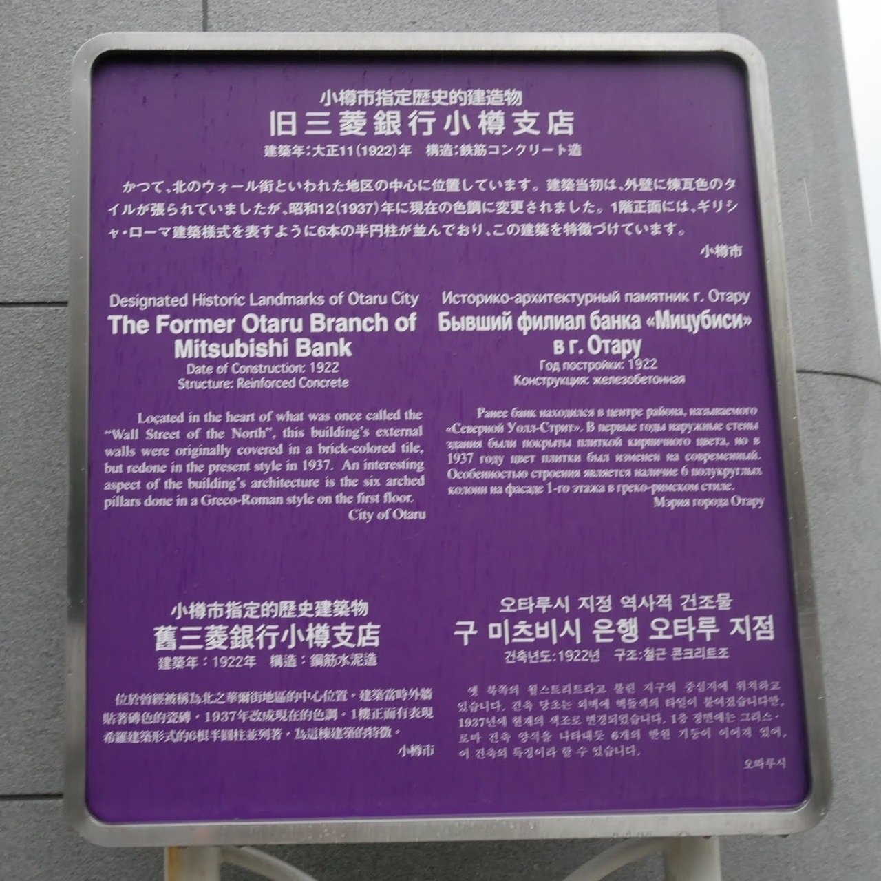 当時の建物が残っており、看板もでているの親切でした。小樽は昔の建物が残っており散策だけでも楽しめます。現在はバスターミナルとして利用されており、人も多かったです。近隣は金融機関も多いエリアで、他と合わせての訪問をおすすめします。