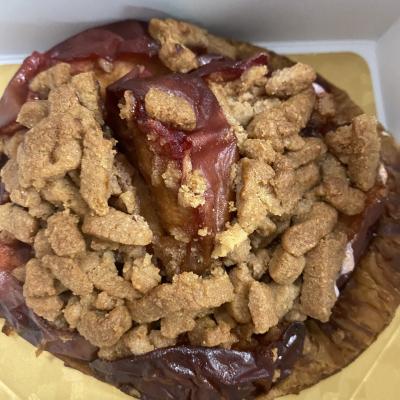何度か購入しておりますが、今回は季節限定シナモンクランプルアップルパイをいただきました。大きくはないので、2人くらいで分ける程度でちょうどよかったが、アップルの甘さとシナモンがあって、とてもおいしく頂けました。