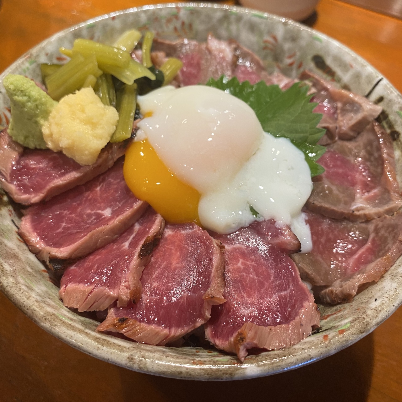 ランチにて利用しました。店内はテーブルと座席、カウンターがありました。黒毛和牛のローストビーフと熊夫と阿蘇のローストホース丼にしましたが、ロースト具合も良くて、お肉のおいしさも感じられおいしくいただけました。