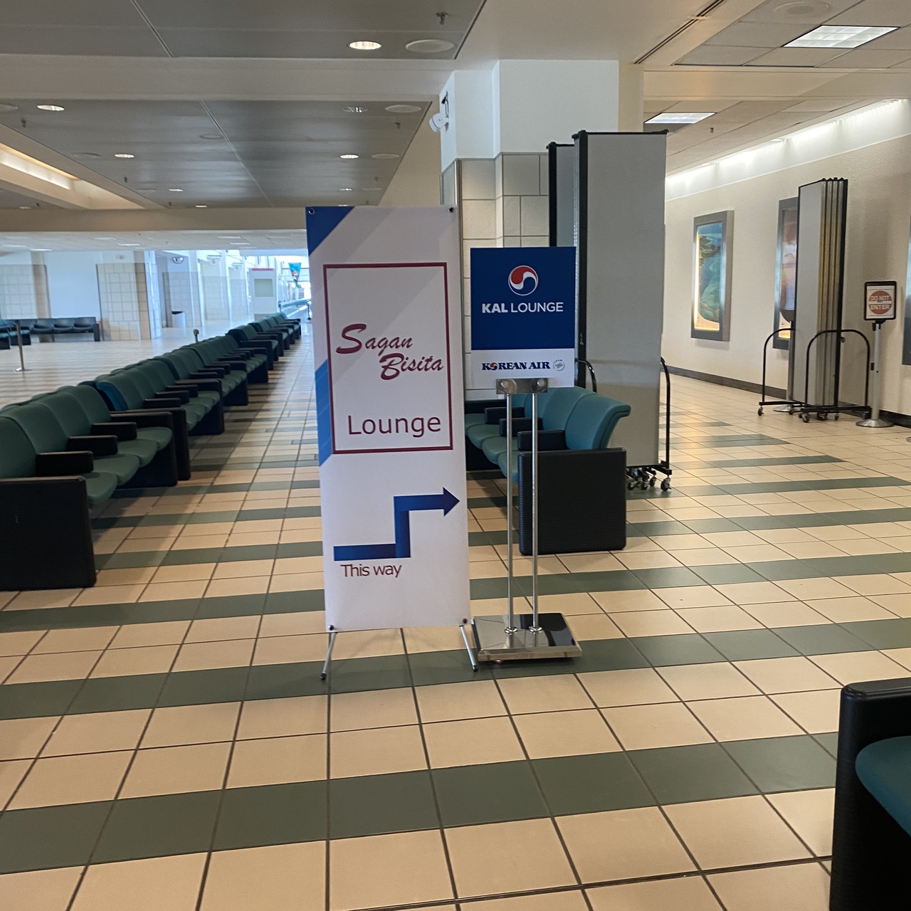 グアム空港にある保安検査の後にあるラウンジとなっております。空港自他は大きくはないため、ラウンジは2つしかなく、そのうちの一つとなっております。飛行機が少ないからか、食べ物は少なめの印象ですが、休憩するのにも良い場所です。