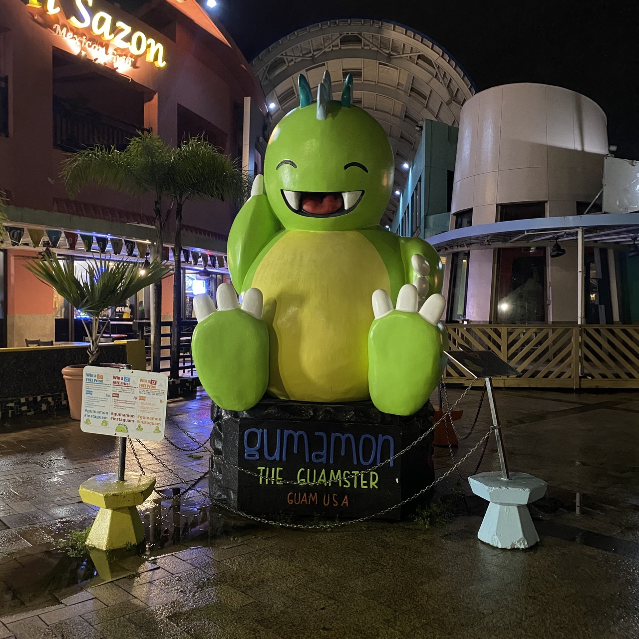 利用した飲食店から近く、商業施設にあったので記念に撮影しにいきました。グアムのキャラクターとなっており、お土産としてグッズなども販売されておりました。グアムの公認キャラクターとなっており、各パーツでグアムを現しているようです。通りにも面しているので場所もわかりやすく、ネタとしては行ってよかったです。