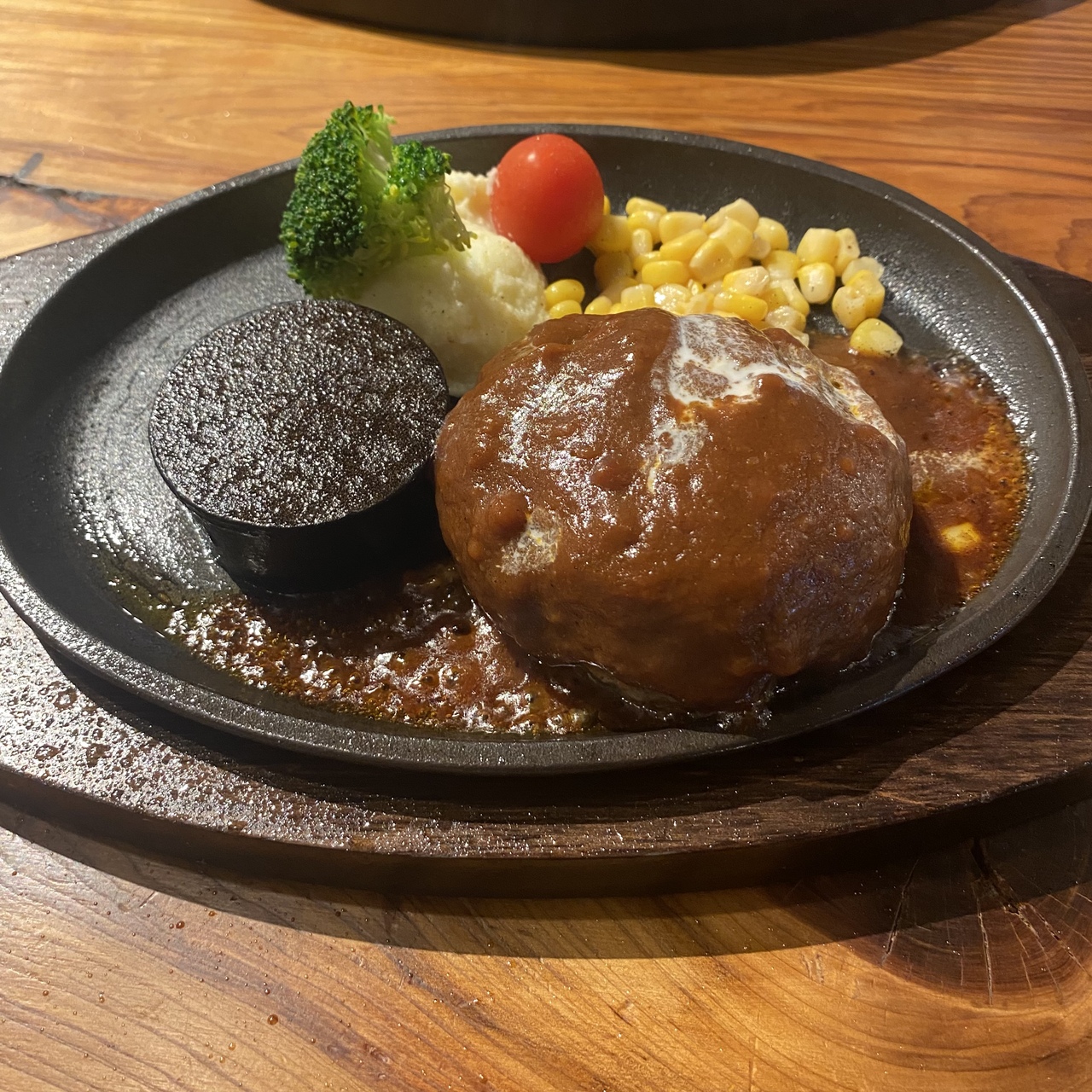 今回はランチにて利用しました。ランチメニューはお肉がメインのようでした。今回は、数量限定のハンバーグにいたしました。ソースは2種類から選べ、デミグラスソースにしました。スープとライスもしくはパンを選ぶ事ができるようになっております。レアで運ばれてくるので、追加で焼く事ができますが、追い焼きなしでおいしくいただけました。