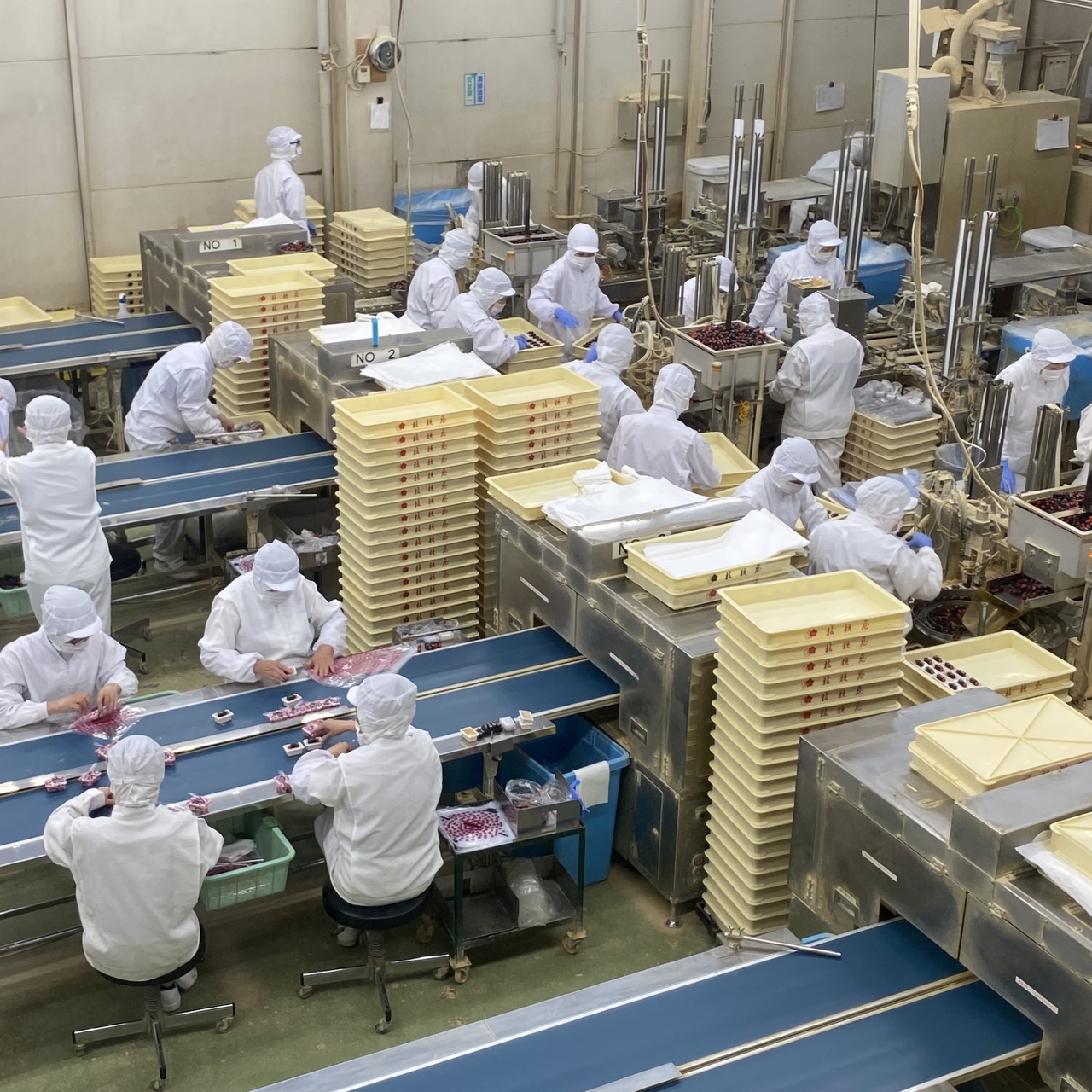 山梨の定番土産とも言える信玄餅の工場見学に行ってきました。特に説明などをしてくれる人がいるわけではなく、自由に見る事ができるようになっておりました。一つ一つ丁寧に包装する職人技をみることができました。