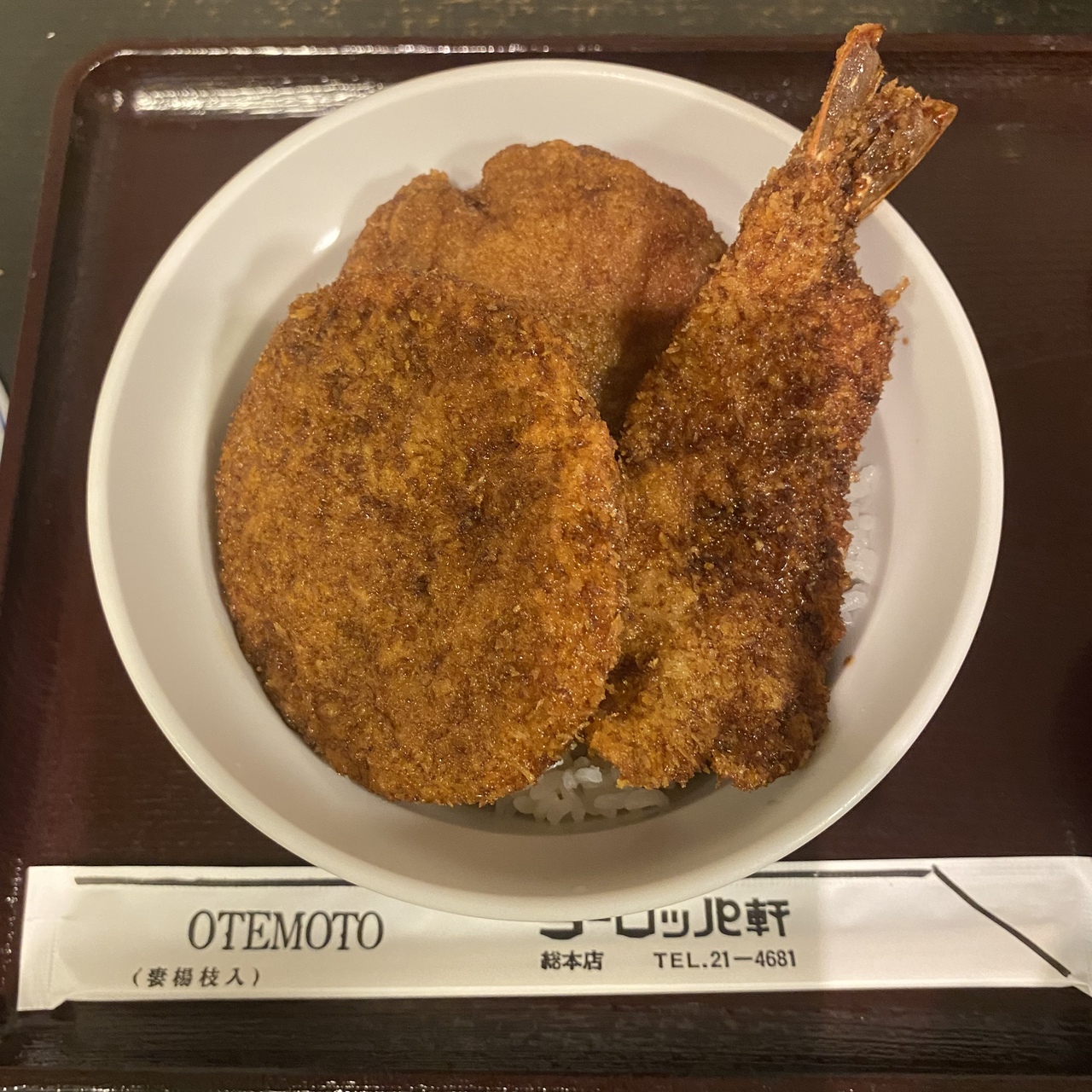 事前にリサーチしてからこちらに来ました。福井駅から徒歩にて向かいました。せっかくなのでいろいろ楽しみたいため、三種盛りスペシャルカツ丼をいただきました。カツ、エビフライ、メンチカツが楽しめ、美味しかったです。