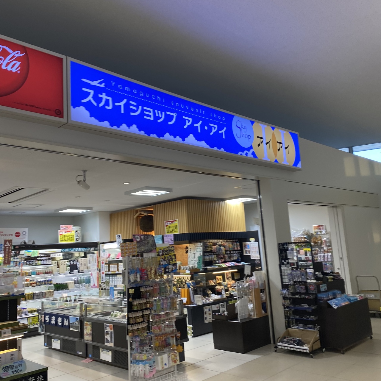 岩国空港にあるお土産屋さんです。コンビニとも一体型になっておりました。岩国のお土産は一通りそろっているといった感じでした。公共交通機関での利用で時間がそこまで無かったですが、十分に見る事ができました。