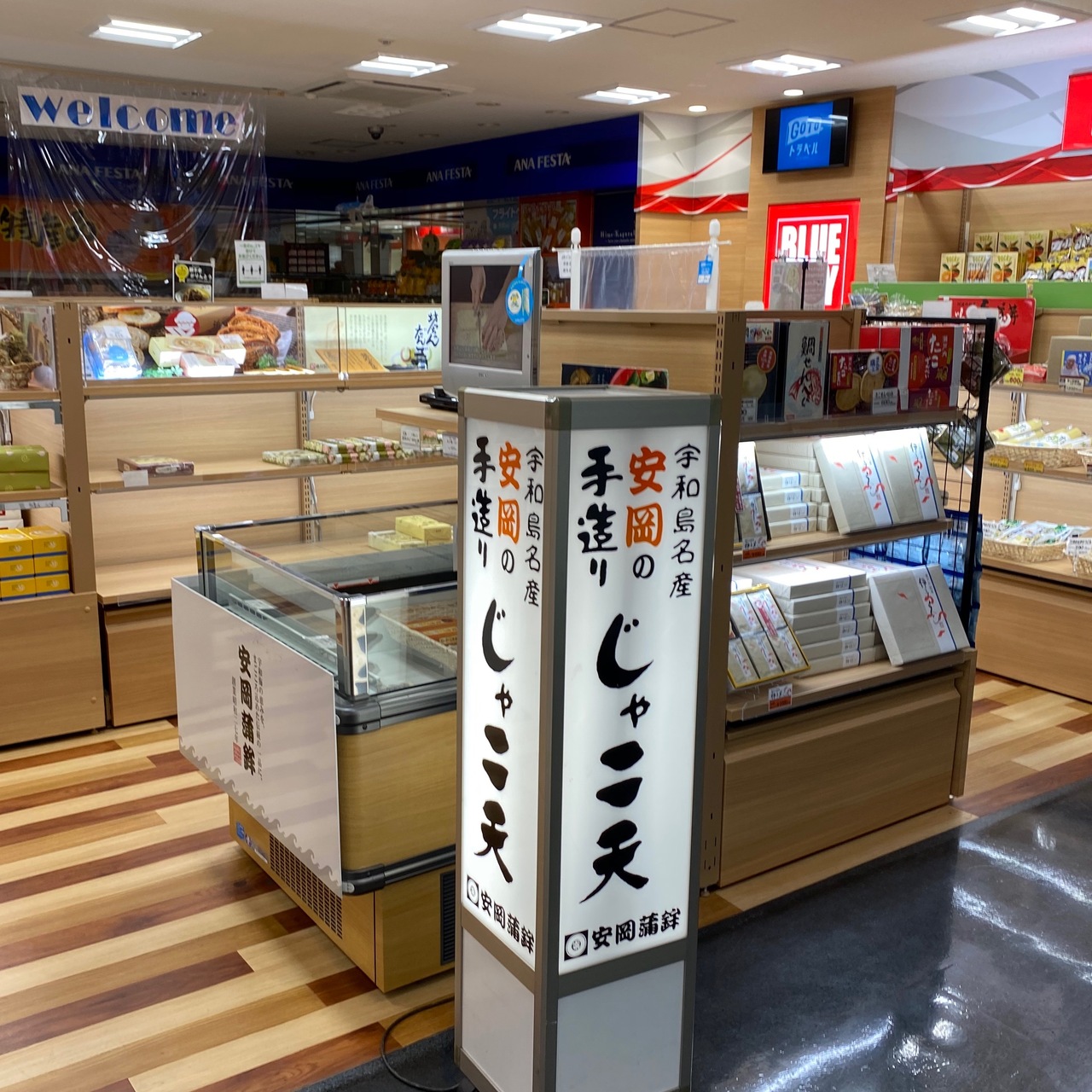 松山空港にあるお土産屋さんです。搭乗前と保安検査前にあり、店舗お規模としては大きくはなかったです。定番のスイーツなどのお土産は揃っておりました、じゃこ天はお店によって取り扱っているお店が異なるイメージでした