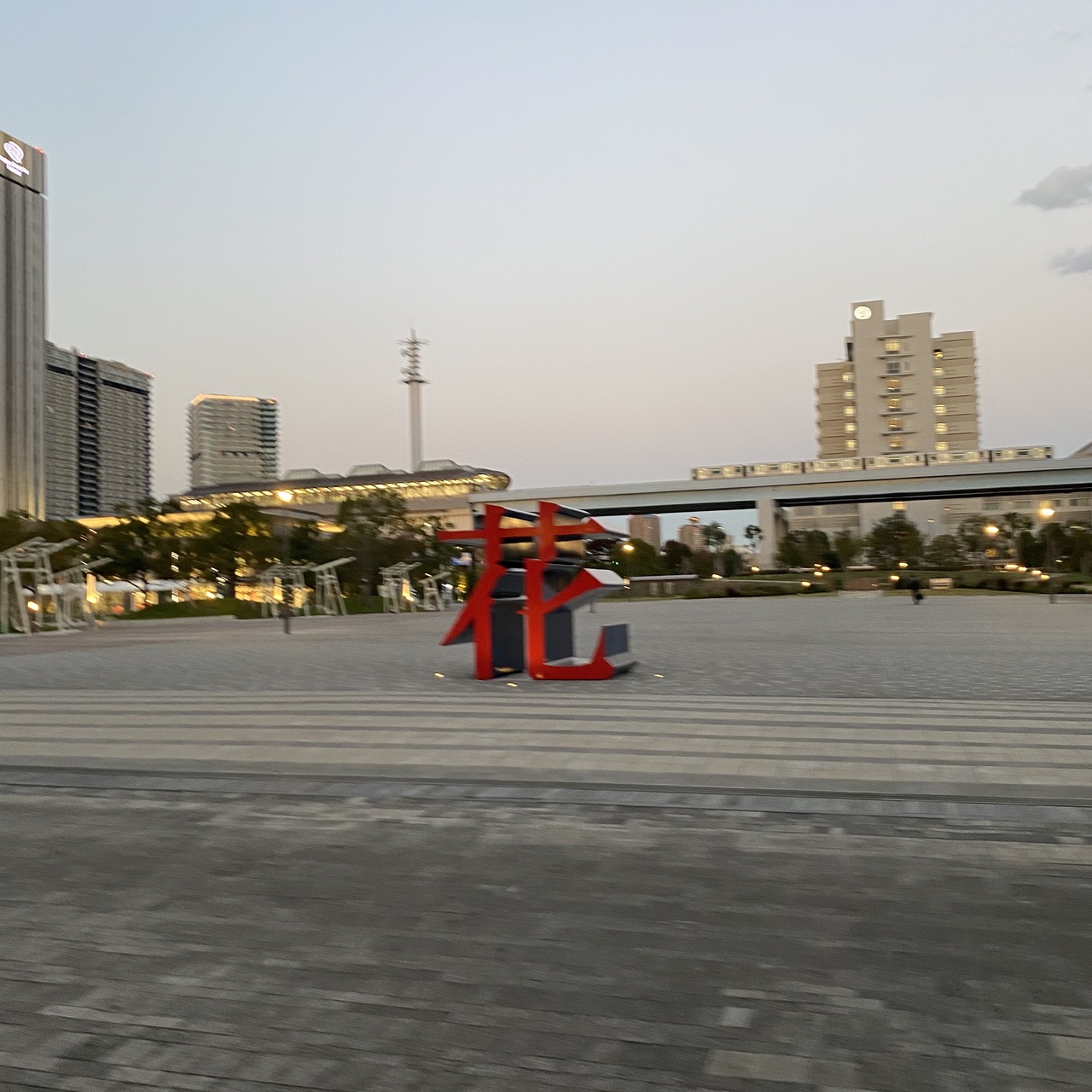 シンボルプロムナード公園に用事があったわけでないですがビッグサイトから駅に行くまでにこちらの公園がありました。花の文字のオブジェがなかなかインパクトがありました。公園というより広場と行った感じでした。