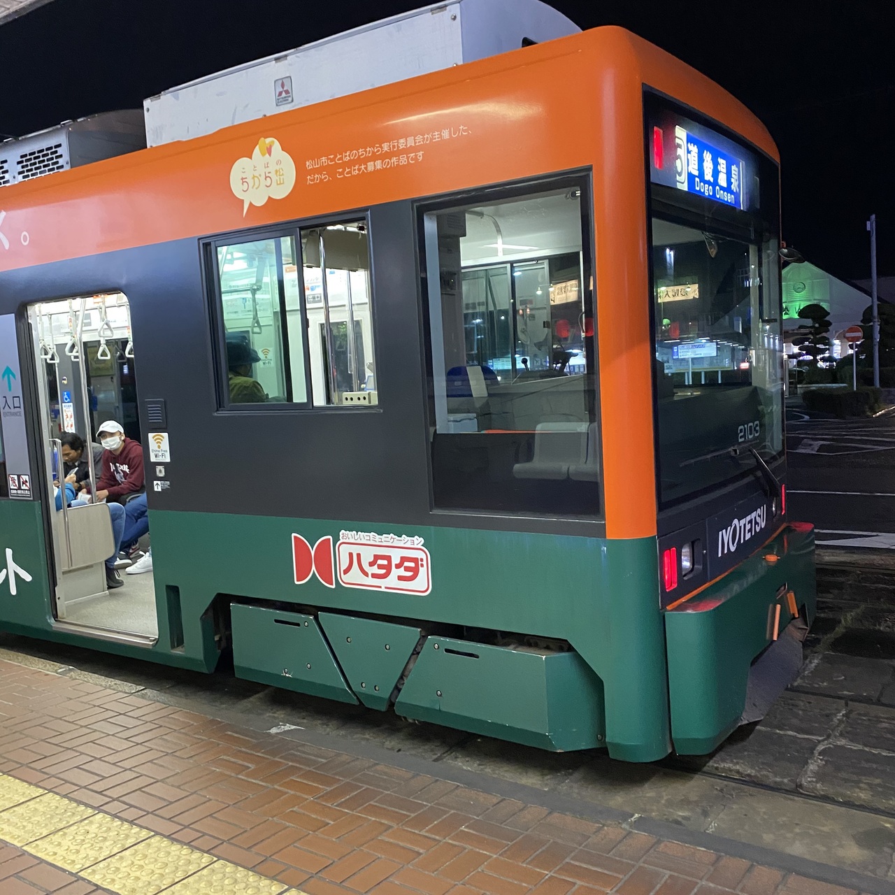 松山市内を通ってる路面電車です。公共交通機関の旅の方には、松山城や温泉へ行ったりと便利です。地元の方も利用しているので、本数は気にせず観光できたので良かったです。さまざまなラッピング電車がありました。