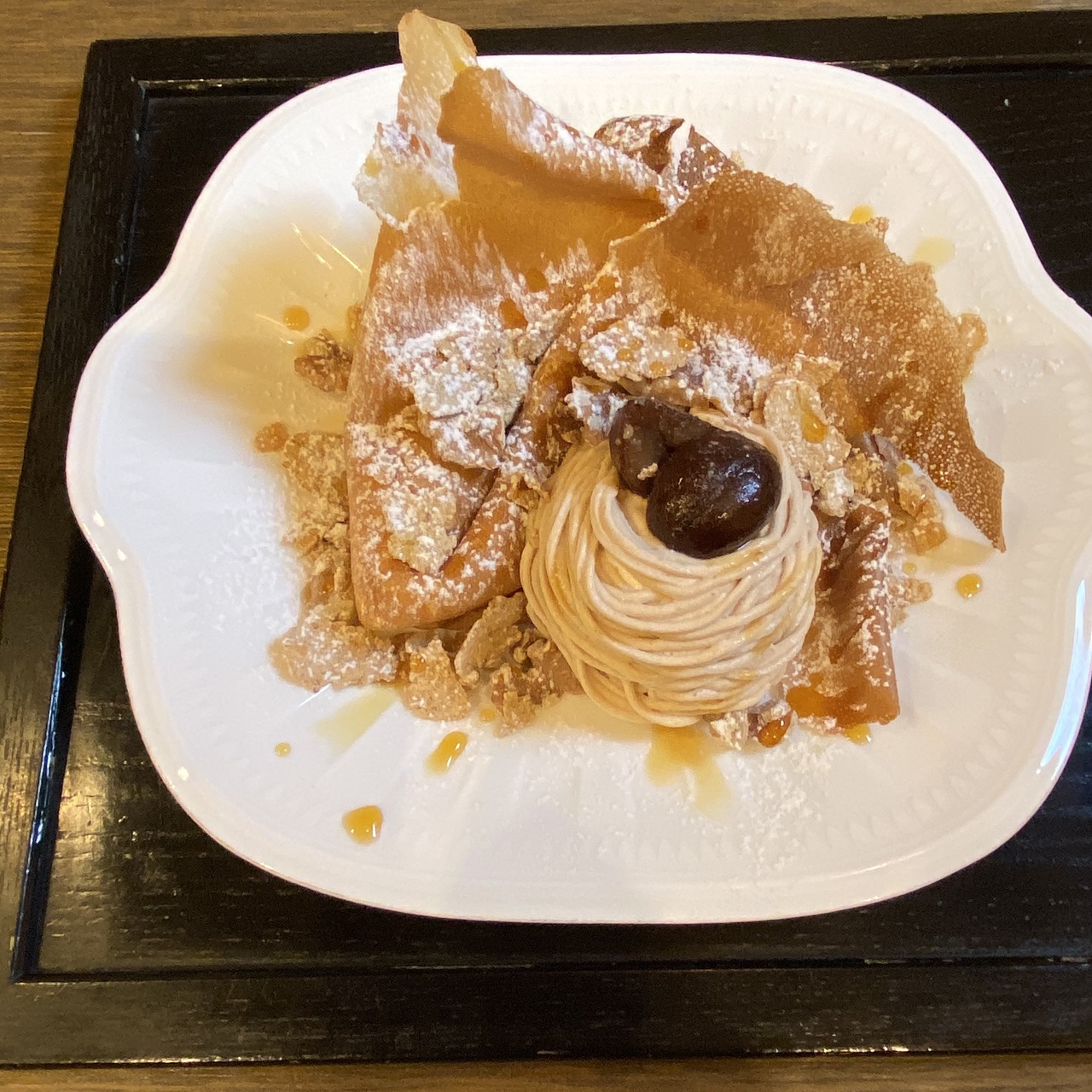 休憩兼ねて利用いたしました。モンブランが、ワッフル、パンケーキ、薄焼きパンケーキと選べたので薄焼きパンケーキにしました。薄焼きパンケーキはパリパリからしっとりまで楽しめる生地で、栗もほどよい甘さでおいしくいただけました。