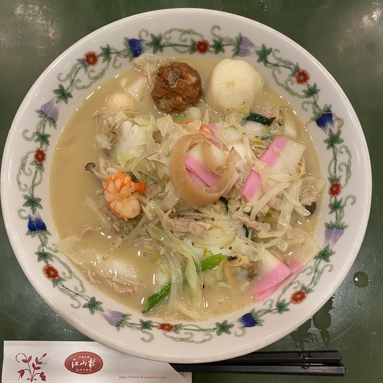 中華街にある中華のお店で、事前に調べてから訪問しました。特上ちゃんぽんをいただきました。具材も沢山で、フカヒレも載っております。海鮮の出汁がでており、濃厚なスープで、柔らかくもちもちの麺との相性もよく、おいしく頂けました。