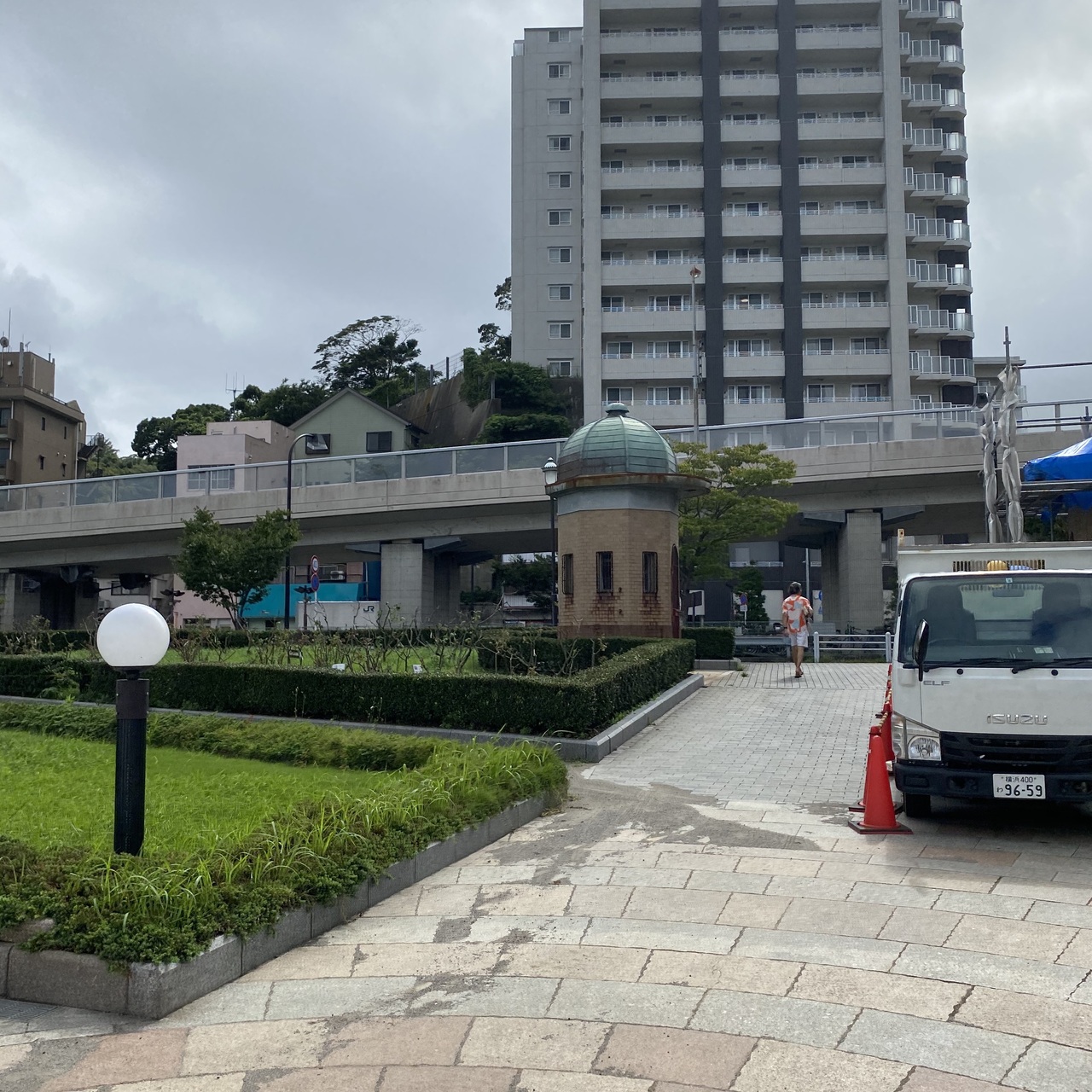 ヴェルニー公園の敷地内にありました。ちょうど、メンテナンスの時期だったようで、近隣は工事中になっておりました。レトロでかわいらしい建物ですが、もともとは、横須賀軍の詰所というこで、こちらが公園ではなかった事が分かる場所です。