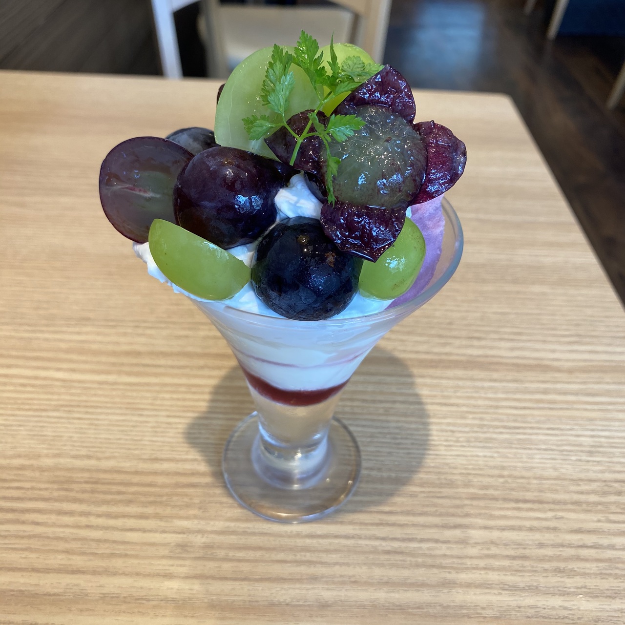 事前に調べてから訪問しました。今回はぶどうパフェをいただきました。ブドウの裏側には梨もあり、旬の果物を頂けました。果物屋だけあって、果物がとてもジューシーでおいしく、リピートして他のメニューも頂きたいと思いました。