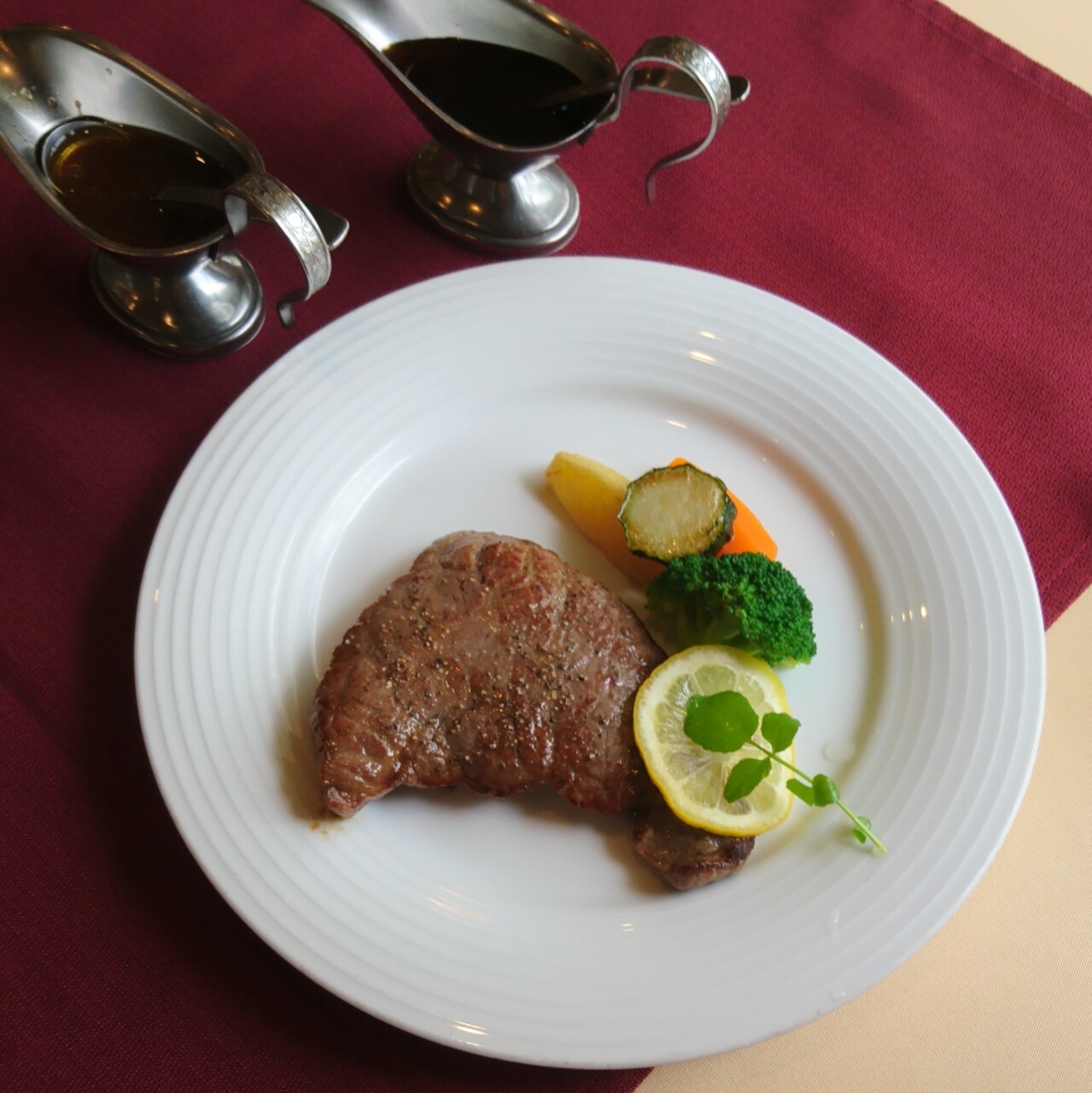 ランチにて、いちぼのステーキをいただきました。おすすめの焼き方はミディアムとのことでした。お肉は柔らかくて美味しかったです。ソースはレモンとオニオンの2種類がついてくるのですが、レモンの方が好きな味でした。