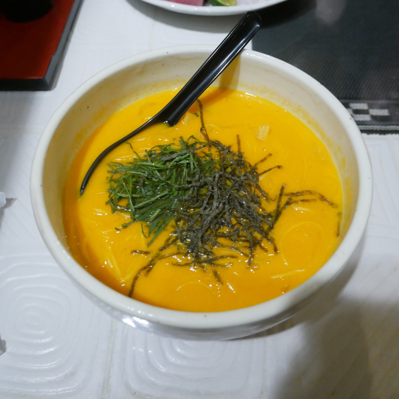 西鉄久留米駅に併設された駅ビルにあるお店で、豚骨ラーメンをいただきました。先にオーダーしてから着席です。あまりの安さにびっくりしました。大正時代から提供しているラーメンとのことで、なかなかのインパクトがありました。