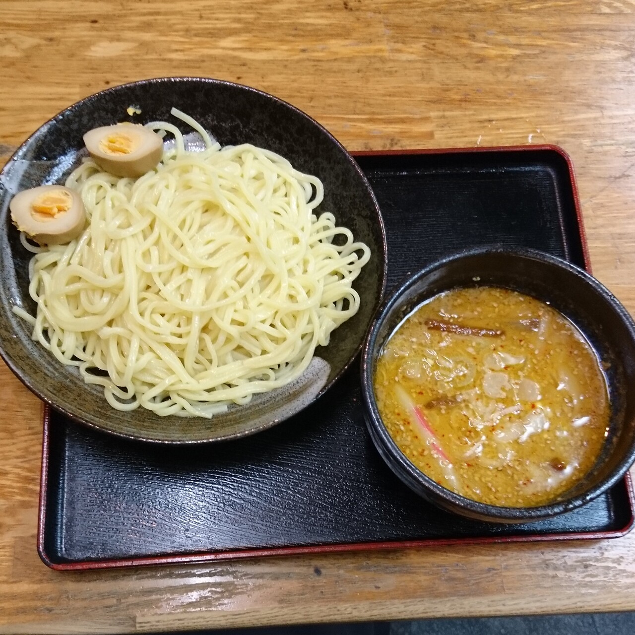 店内はテーブル席メインで食券方式のお店です。今回は、ごまつけめんを味玉トッピングにて頂きました。あまめな味付けでしたが、好き嫌いは分かれそうですが、おいしくいただくことができました。麺は中盛まで同じ料金でした。