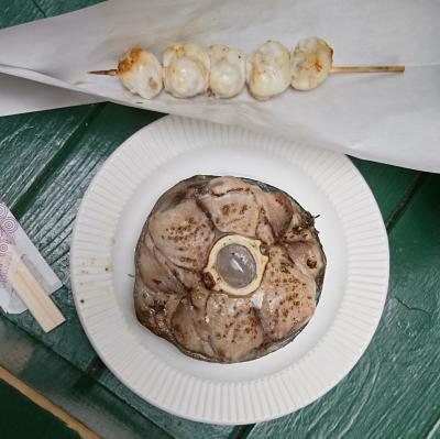 電車で熱海へ向かいました。駅を出てすぐわかる場所に看板があり、人も多くとてもにぎわっておりました。お土産などを買うためや食べ歩きなどにはよい場所です。休日でしたので飲食店はどこも大行列となっておりました。