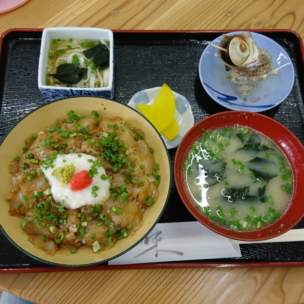 ひらめ祭りにあわせて訪問いたしました。平戸桟橋から近い場所にあり、ランチタイムのみの営業となっておりました。ひらめは漬け丼となっており、とろろと明太子がのっておりました。さざえとミニうどんもついてきておいしかったです。
