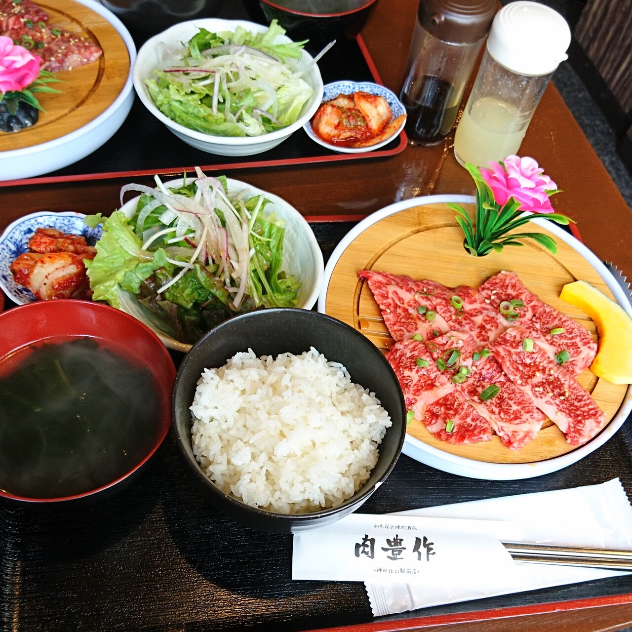 ランチにて利用いたしました。カルビ定食は、お肉とライス、スープ、サラダ、キムチがセットになっておりました。お肉は、柔らかくて美味しかったです。コスパはこのあたりでは可も不可もないといったところでした。