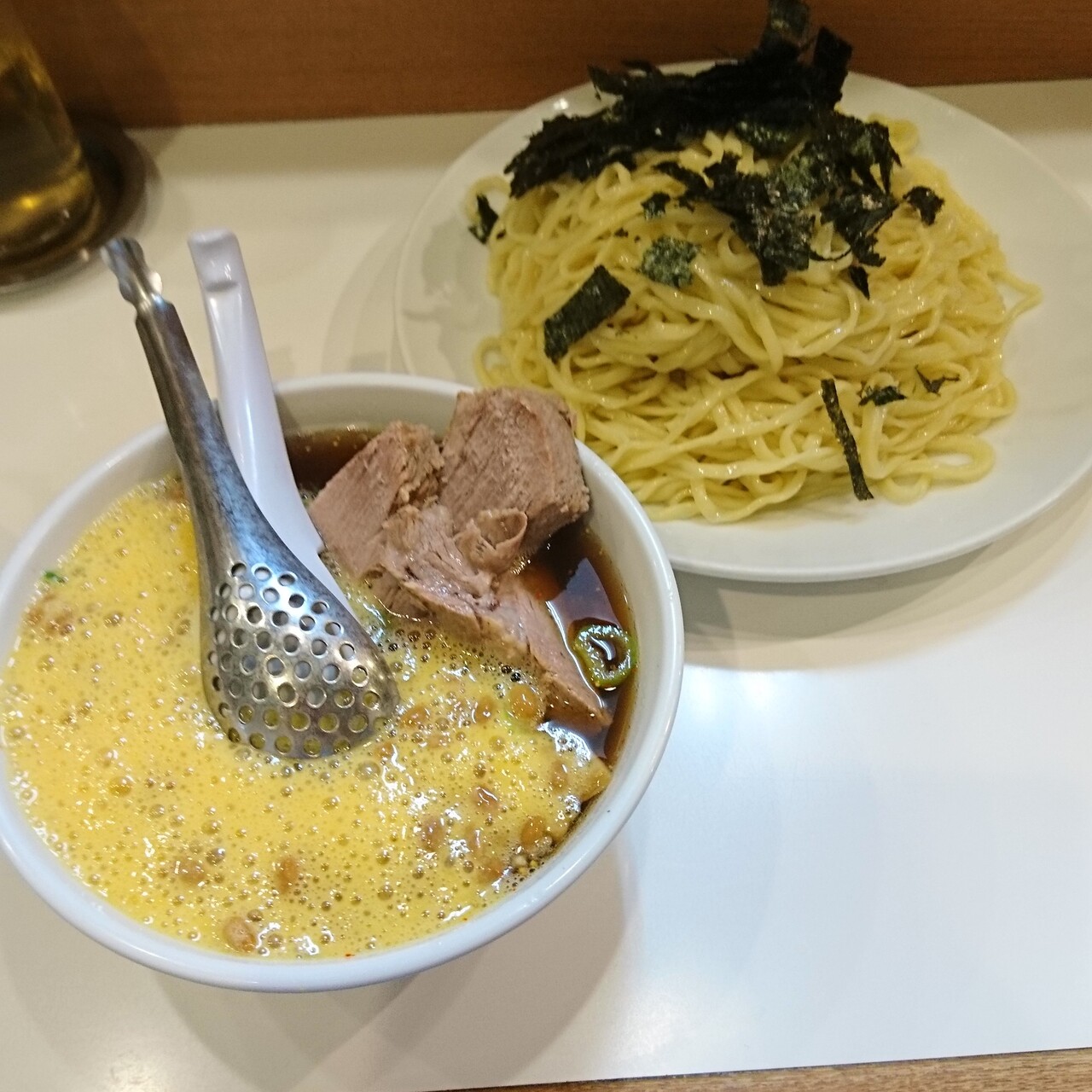 珍しかったので納豆ざるらーめんをいただきました。普通盛りと大盛が選ぶことができました。めんはつるっとしていて食べやすく、納豆やつけ汁とも相性が良く、おいしく頂く事がえきました。味玉も味がしみてて美味しかったです。