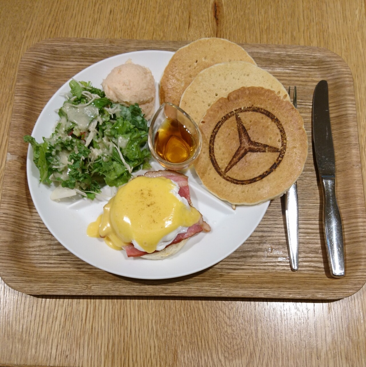 朝食として利用いたしました。スタープレートにしましたが、ブランドロゴの刻印が入ったパンケーキとエッグベネディクトとサラダがワンプレーとに盛られております。お店の雰囲気も良く、仕事などをされている方もおりました。
