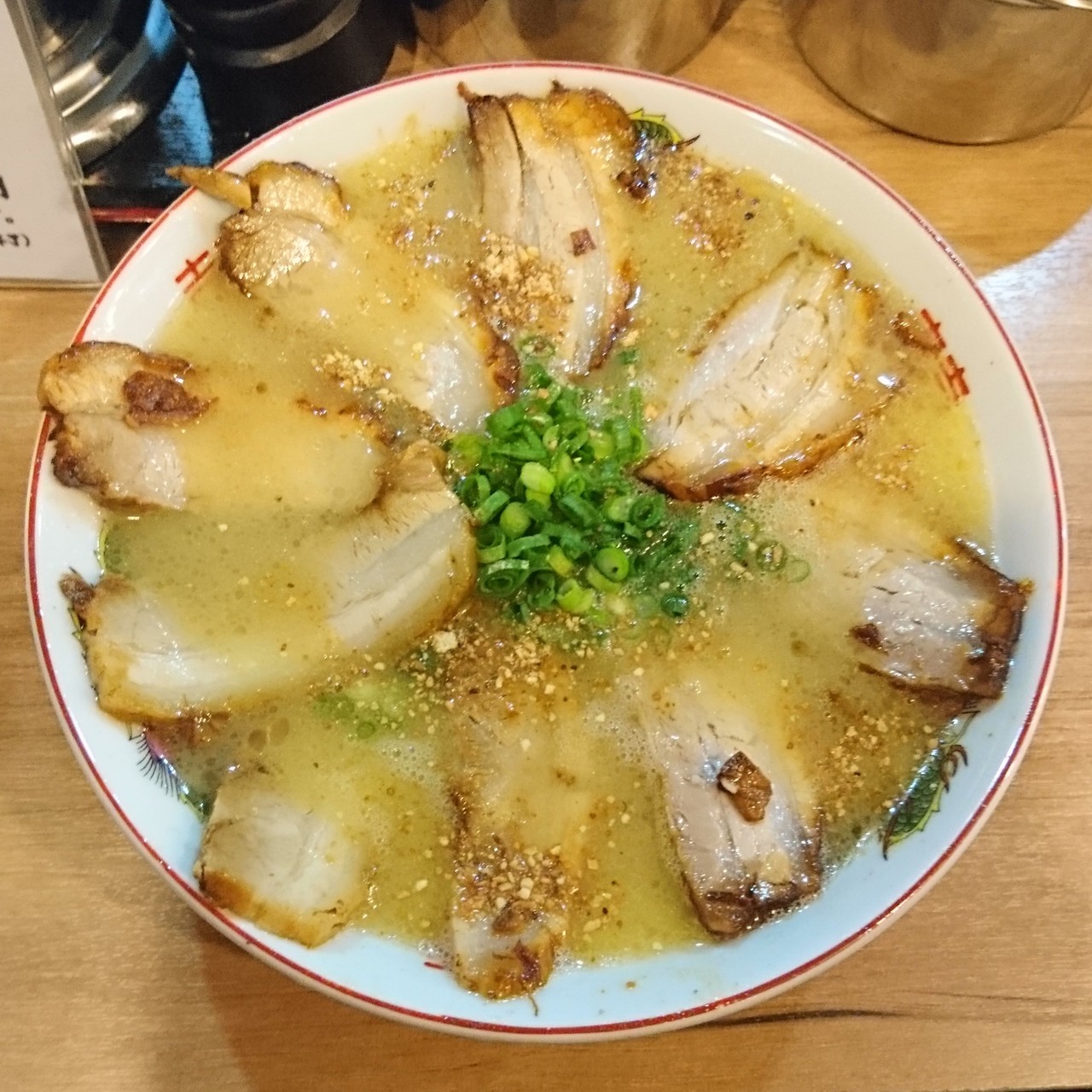 ランチにて利用いたしました。ラーメンはいろいろありましたが、肉そば全部盛りと餃子をいただきました。ラーメンはチェーン店といったレベルで、可も不可もございません。餃子はニンニクありと無しが選べるようになっておりました。
