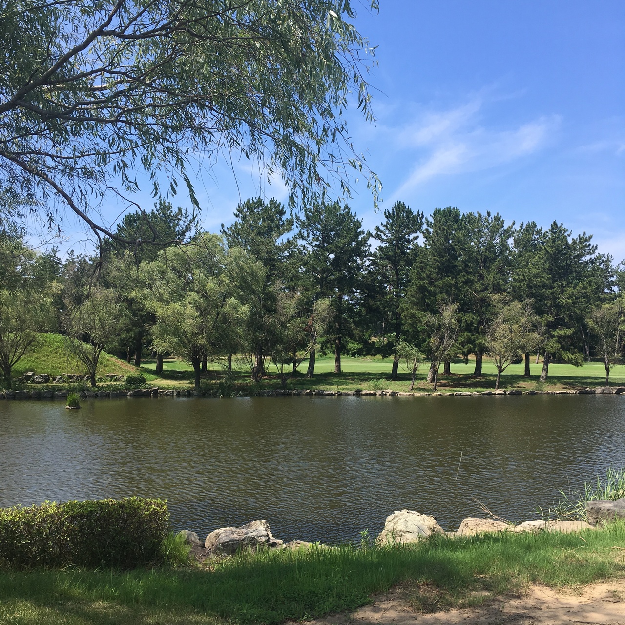 片山津温泉に宿泊し、こちらのゴルフ場へタクシーにて向かいました。10分ほどで到着します。90ホールもある大きなゴルフ場で、白山コースをまわりましたが、徒歩でのラウンドで、猛暑日でしたので疲れました。芝はきれいでした。