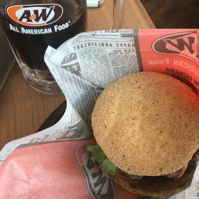 沖縄県でチェーン展開しているハンバーガーのお店です。The A&Wバーガーのセットを頂きました。パテとクリームチーズの相性がよくて美味しかったです。店内でのイートインのためルートビアも飲み放題となっております。
