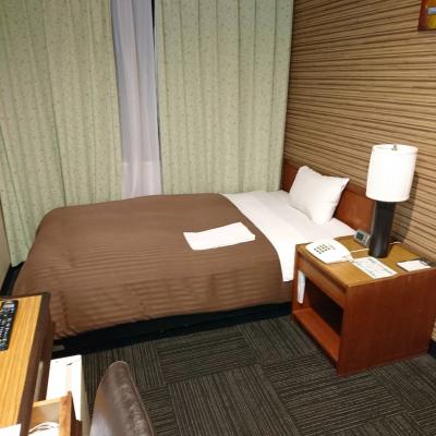 1泊にて利用致しました。駅前からは、離れていますが繁華街も近くてよかったです。部屋は、系列店と同様で、お値段を考えれば問題なしです。朝食会場は広めで、クロワッサンが人気のようで数量限定となっておりました。