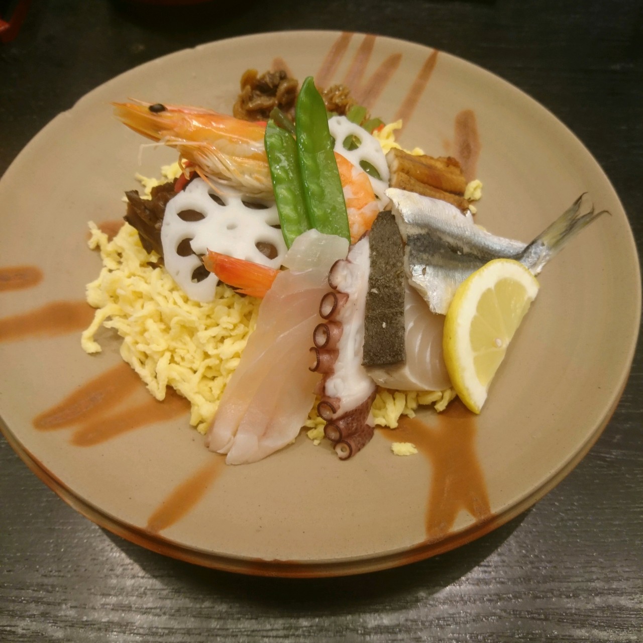 空港に向かうとき、ラスト岡山ご飯として、バラ寿司をいただきました。全体にちゃんと味が付いており、そのままいただくことができます。オーダーから出てくるまでも早いので新幹線乗車前にもおすすめです。あら汁も美味しかったです。