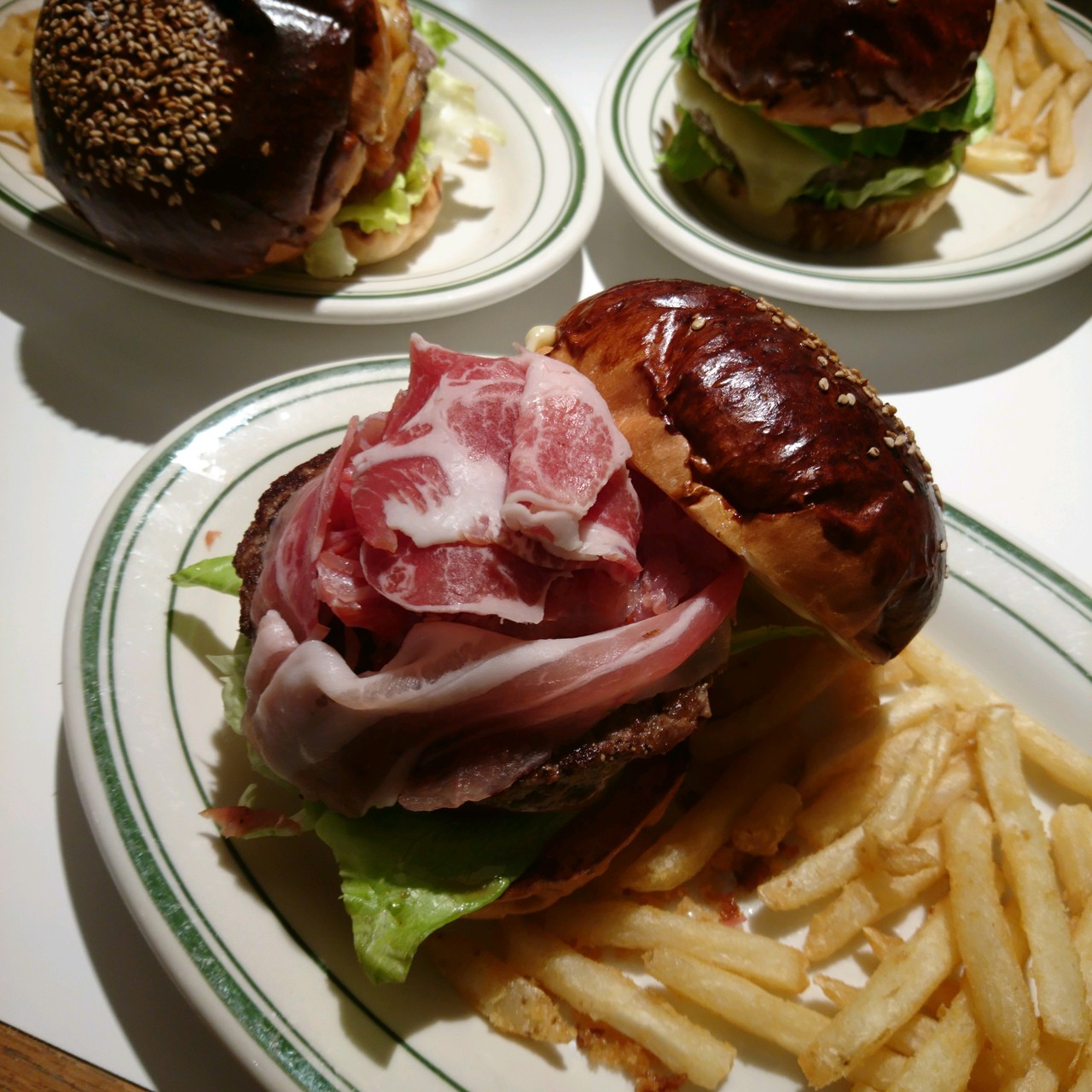 予約してから訪問いたしました。年齢層は低めで女子が多かったです。ハンバーガーの種類が多く、迷いましたが、限定メニューのウルトラプロシュートバーガーを頂きました。食べ応えありで、美味しくいただくことができました。