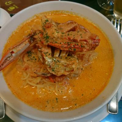 高崎駅についたのが遅めの時間だったので、こちらにてビールセットを頂きました。パスタとサラダとビールがセットになっております。パスタの種類がとても多いので、迷いましたが、ワタリガニのトマトクリームを頂きました。おいしかったです。