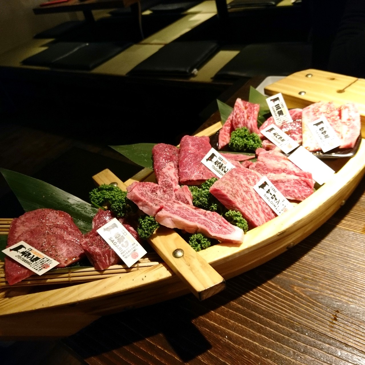 まずは、希少部位の盛り合わせを頂きました。舟盛りになっており、焼き方がわかるような札がついておりました。おすすめのレバーやユッケ、牛寿司など、サイドメニューもどれもおいしく頂けました。店員の方もとても良い方でした。