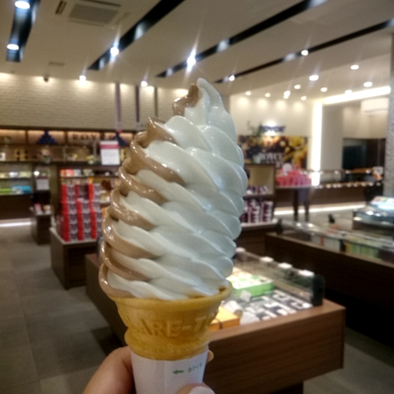 北海道土産の定番とも言えるお店です。目の前には公園、駐車場も多く、デイサービスの車なども停まっておりました。イートインコーナーがあり、店内で購入したものをいただけます。今回はソフトクリームをいただきました。