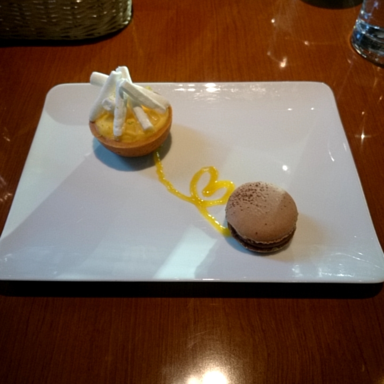 休憩かねてこちらのカフェを利用いたしました、デザートセットを注文し、オレンジタルトにいたしました。ケーキには、酸味と甘みが融合しており美味しかったです。マカロンもついてきて見た目も楽しめるワンプレートでした。