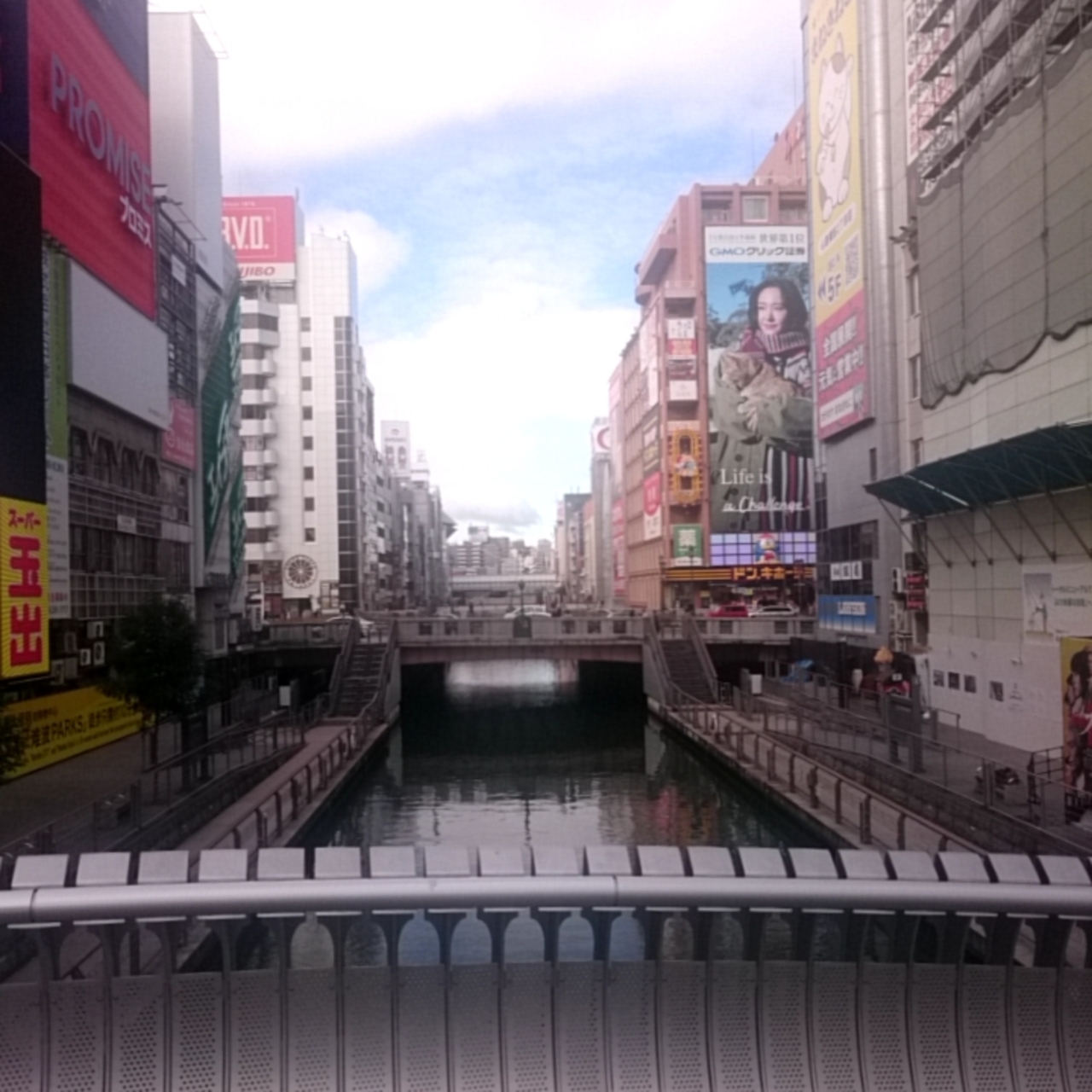 こちらの周辺で一番写真をととているひとが多い場所だと思います。大阪の定番ともいえるグリコの看板がこちらから見えます。午前9時くらいと朝早くの訪問でしたが、すでに外国人観光客などが多くおり、賑やかになっておりました。