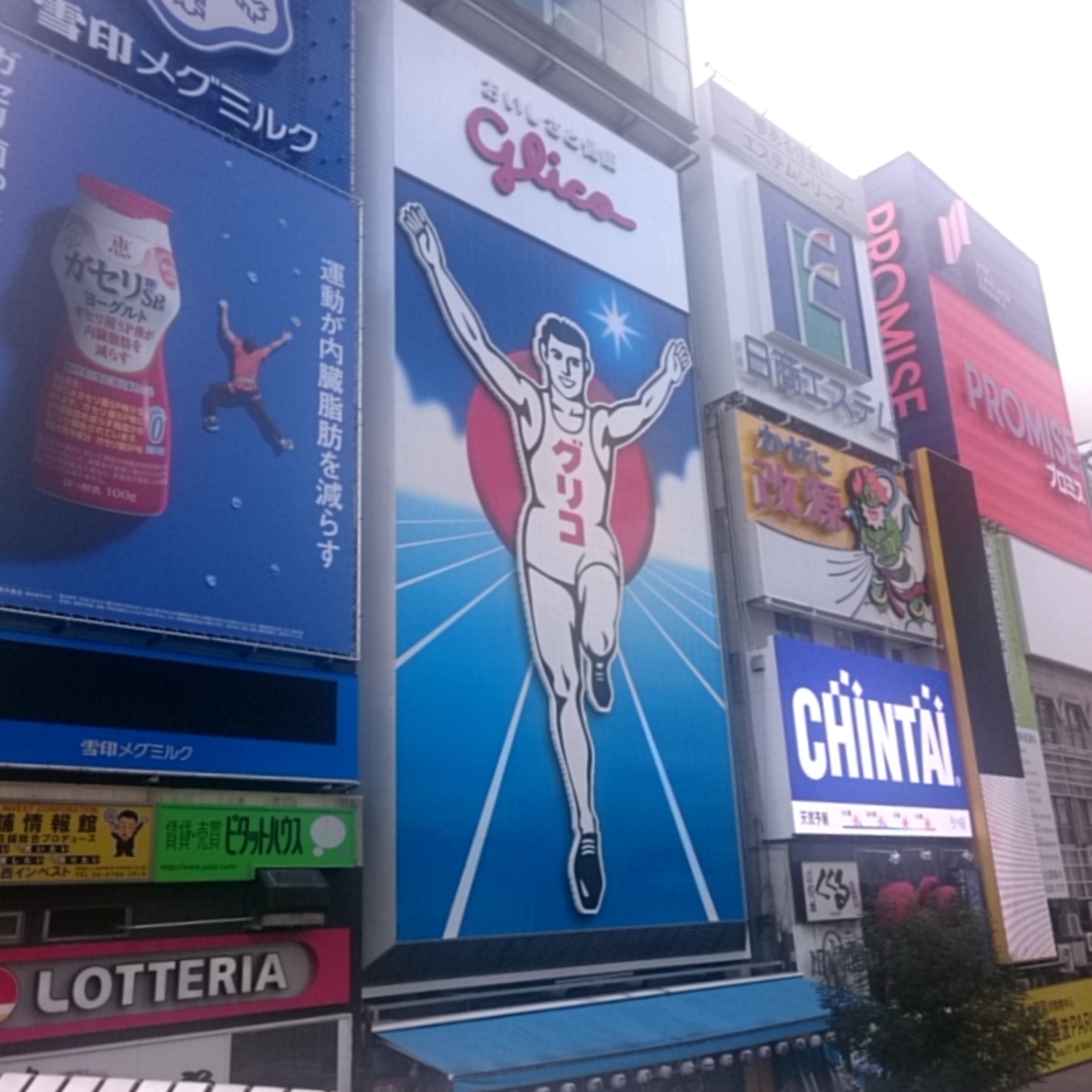 グリコの看板を見ると昔から大阪へ旅行にきているとテンションがあがった場所です。朝早めの訪問でしたが、外国人旅行客などが多く、看板の写真撮影をしておりました。商店街もいろいろな店があり、どこに入るかまよってしまいます。