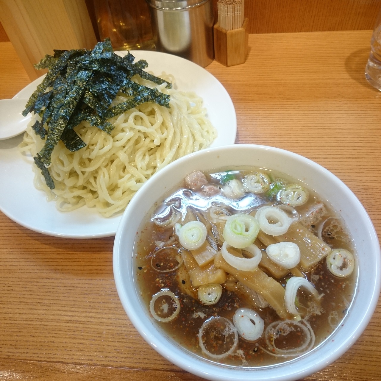 こちらではつけ麺のことをざると、呼んでおり、そちらをオーダーしました。1000円は高めだなと思っていたら、ボリューミーでした。具材もたっぷりでめんとつけ汁の相性もよく、おいしくいただけました。食券のところにもかいてありますが、七味が入っていらので、ピリ辛でした。机上は酢とペッパーでした。