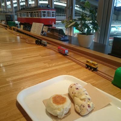 改札を出てすぐにあるカフェです。ベーカリーやスイーツ、サラダなどがあり、セルフです。もっちーなとクランベリーフロマージュをいただきました。お餅とチーズの相性がよく、クランベリーの甘さもちょうどよく、おいしく頂けました。店内には電車の模型が飾られておりました。