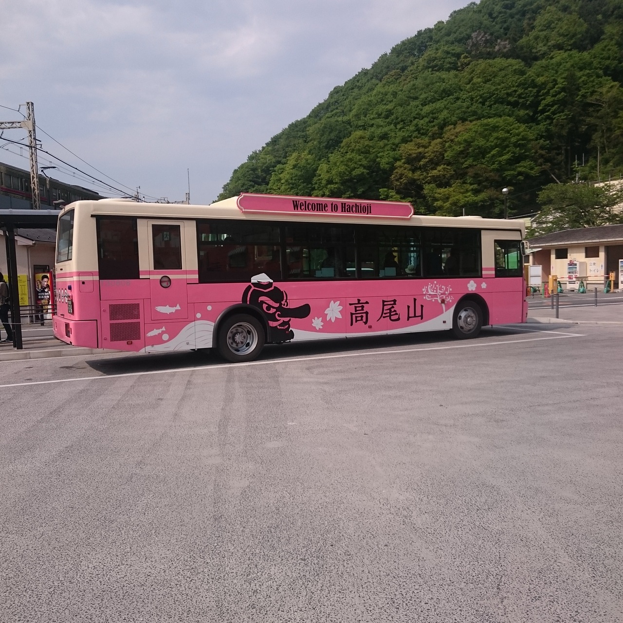 高尾山口駅に乗り場があり、高尾山宣伝のラッピングバスを見ましたが、色の配置がトリックアート美術館と同じで、デザインがとてもかわいかったので思わず撮影してしまいました。観光記念に、思い出になるのでおすすめです。